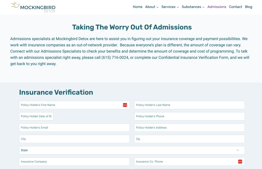 Be transparent about your insurance and payment information. What insurance providers do you accept? Do you also accept programs like Medicaid or Medicare? These details help potential clients determine the feasibility of attending your treatment center.